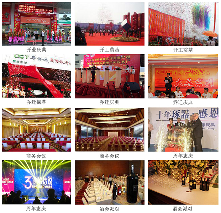 福州喜洋洋礼仪庆典有限公司为政府及企事业单位度身打造企业形象的庆祝类公关活动,包括开业乔迁、落成奠基、生日寿宴、***典、会议会务、年会酒会、开盘典礼、新品发布、婚礼礼仪、促销推广、庆典策划、文艺演出、灯光舞美、场景布置、大型活动、庆典活动、企业年会、展览展厅、封顶落成、签约仪式、会议会务、奠基仪式、开盘活动、客户答谢、地产活动、品牌推广、品牌巡展、产品发布、促销推广、开业庆典、文艺演出、企业活动、大会开幕、展览展会等各类型活动。