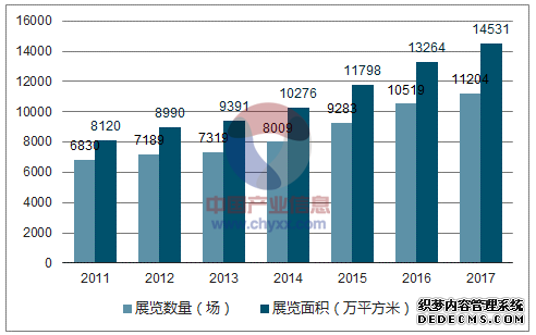 2011-2017 年全国会展展览数量及面积情况统计